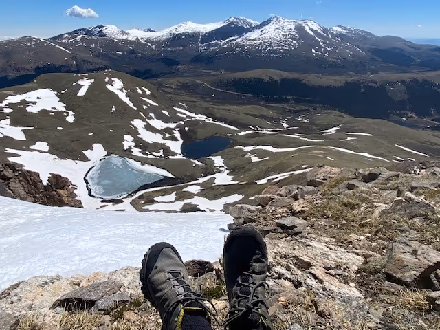 7. Square Top Mountain, Georgetown, CO. I had been on this trail the prior year but only as far as the first lake due to weather. I was eager to come back to continue past both lakes and onto the 13er summit. I was so ready to get the hiking season started this year, because it was a long rough winter and spring. This was my first big hike of early summer, and I still did it too soon. Square Top is a 13er and the majority of the summit was still covered in snow. Snow that would warm in the day and then freeze again at night. The last mile to summit on this trail is very steep and the sloshy condition of the snow made it even more challenging. I stuck with it for a while, not quite making summit, but definitely past the 13,000 mark, so I was satisfied enough. I sat on a rock and looked down on the two Square Top lakes still partially frozen below me. When I stood up from the rock, I ripped a hole in my pants. It’s a fun moment when you realize you are hiking out with your underwear showing.